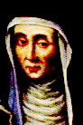 Alegre y caritativa unió con admirable sabiduría la contemplación de los misterios divinos con las ocupaciones del gobierno y la práctica de las buenas obras, como lo atestiguan sus numerosas cartas.